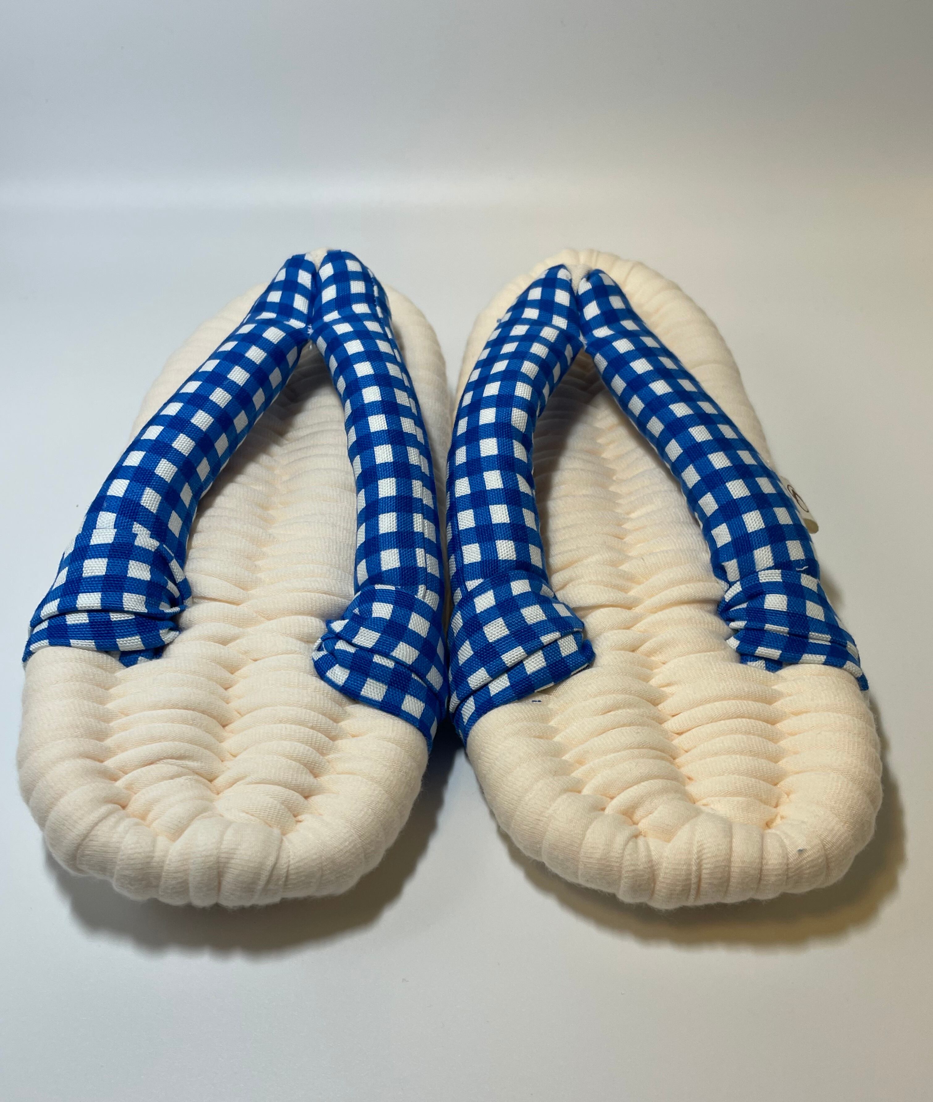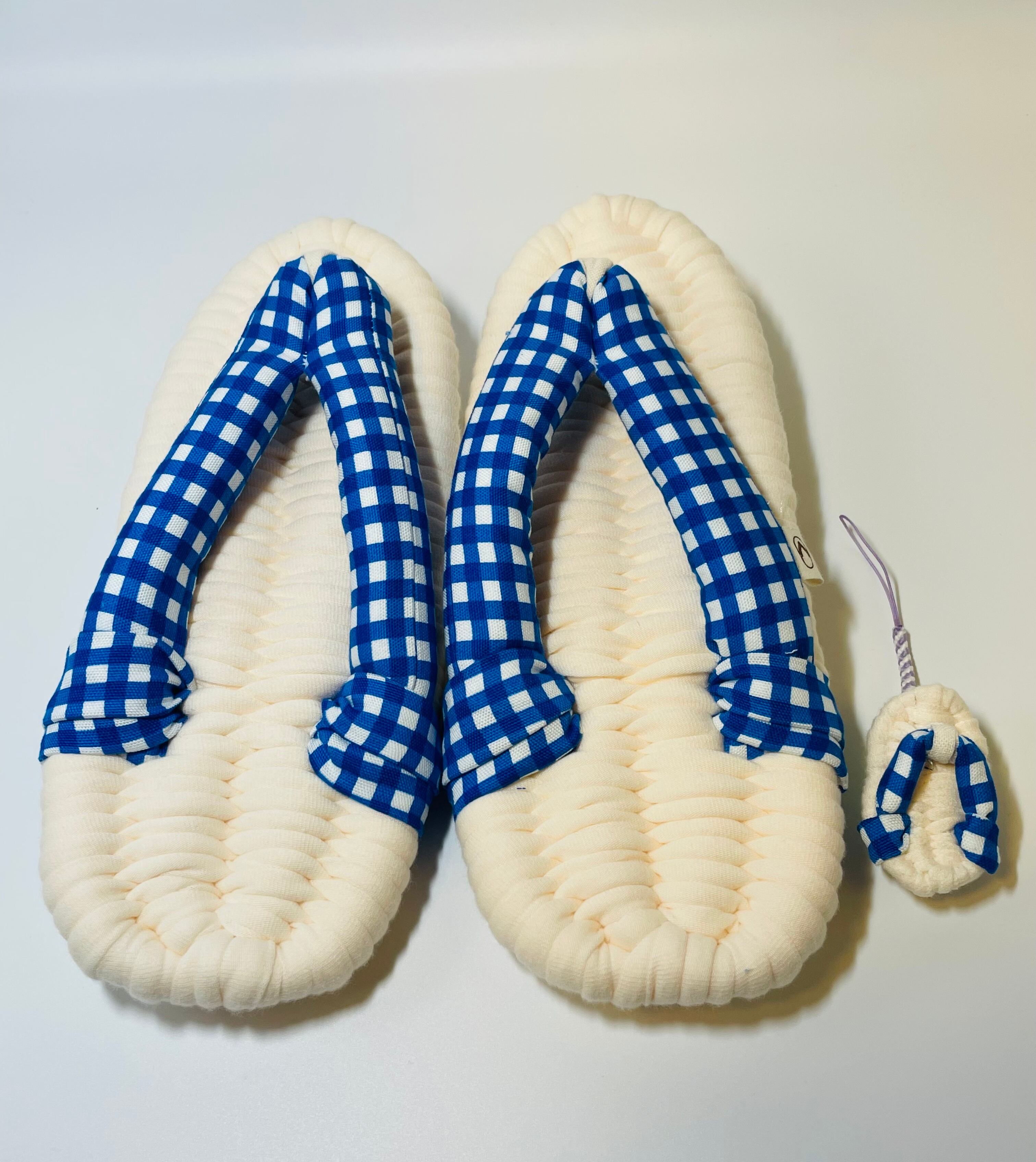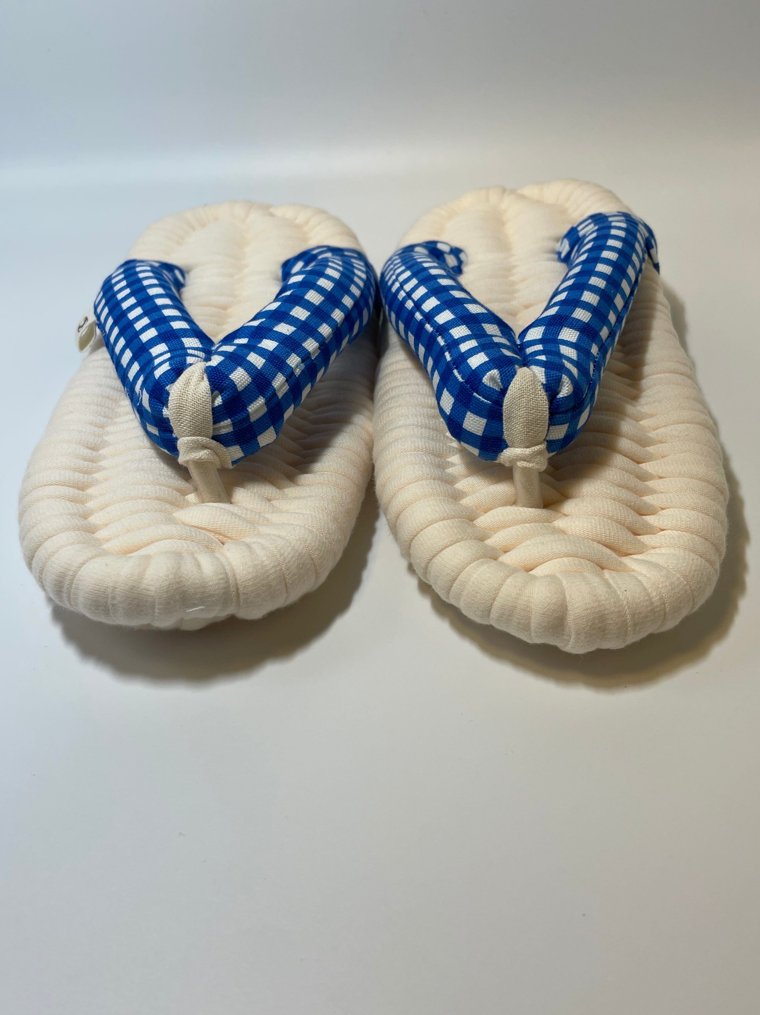 生成り×ブルーチェック やさしい履き心地の布ぞうり(レギュラー)