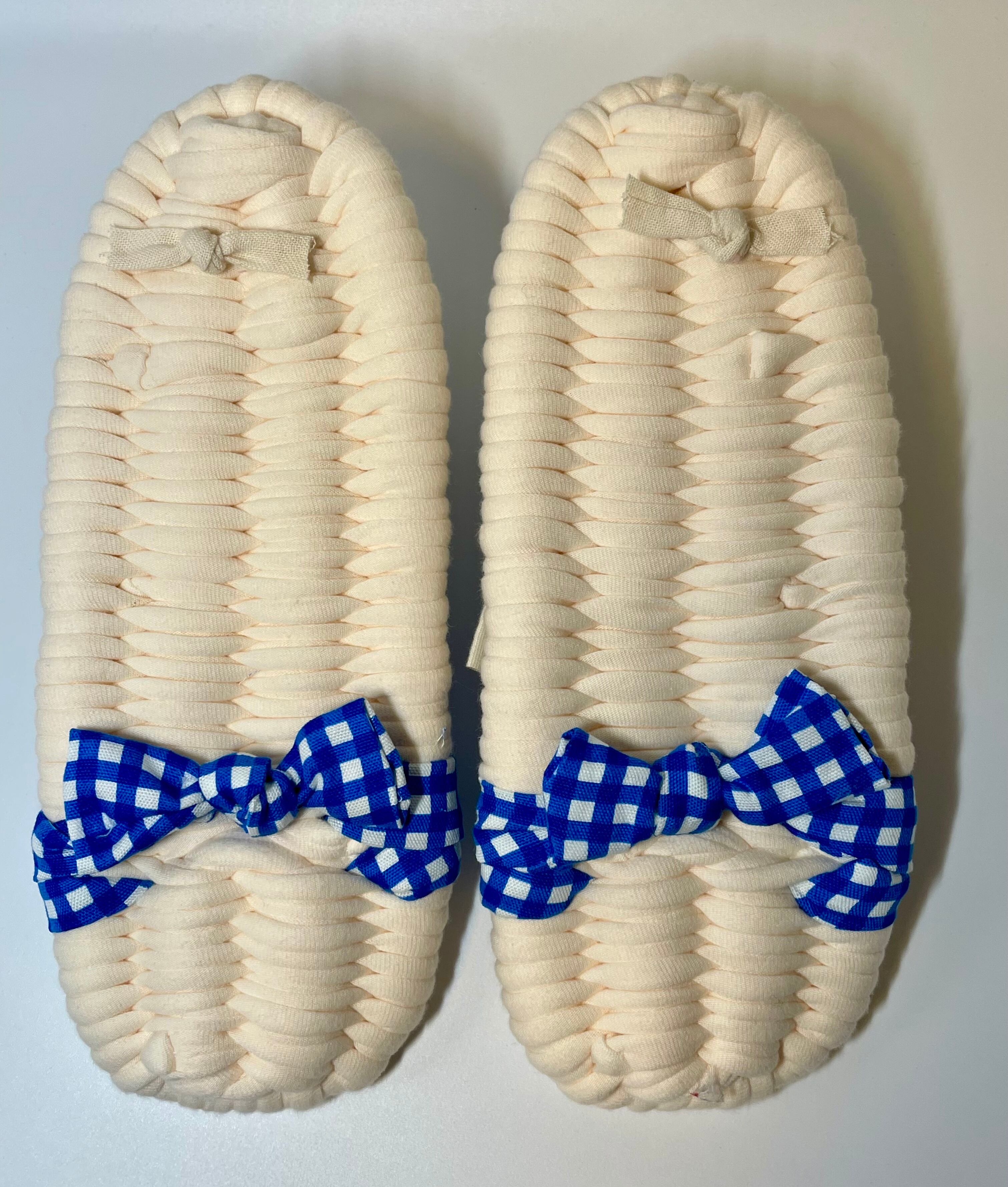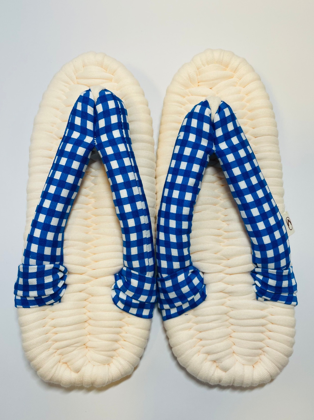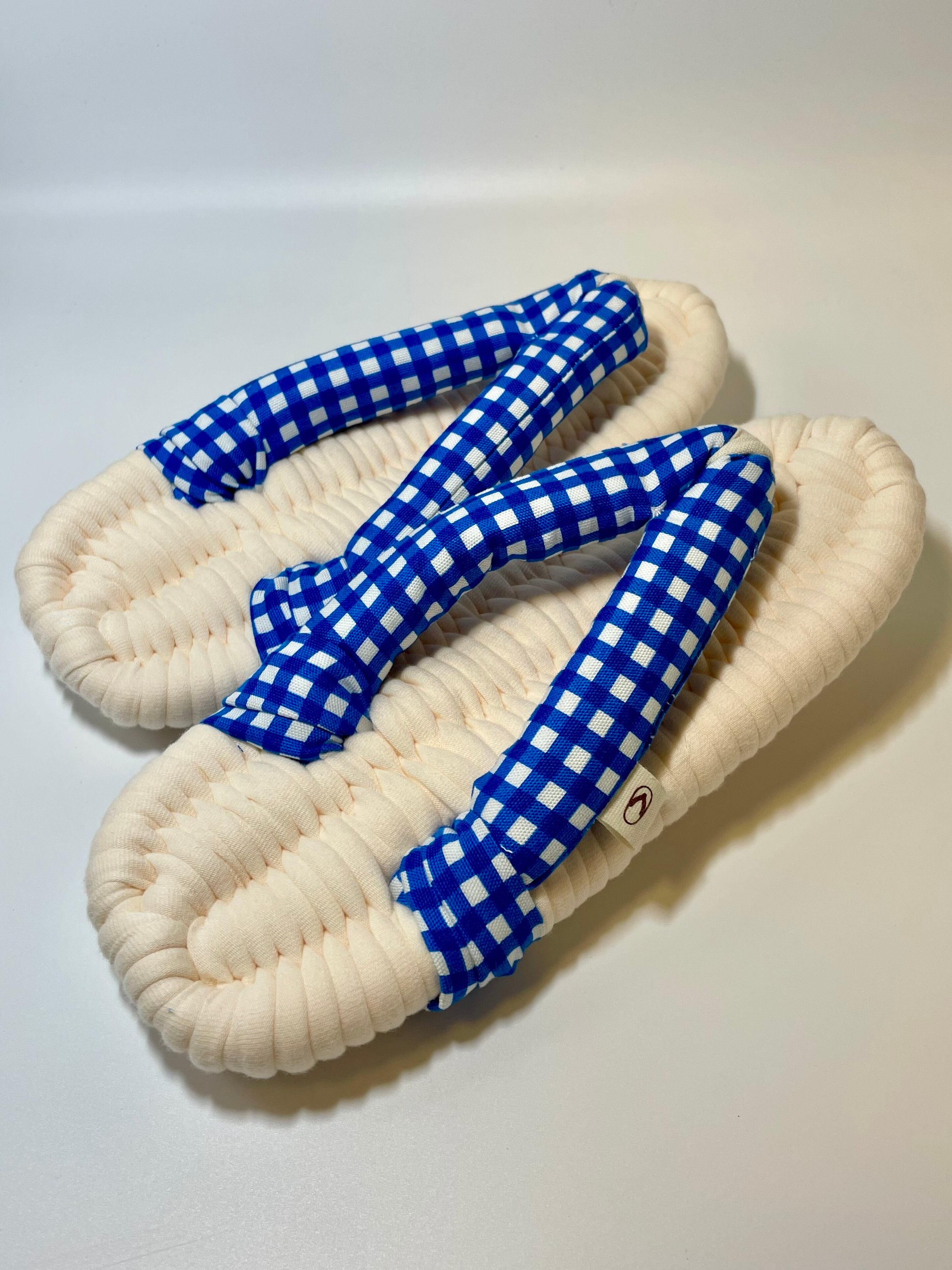 生成り×ブルーチェック やさしい履き心地の布ぞうり(レギュラー)