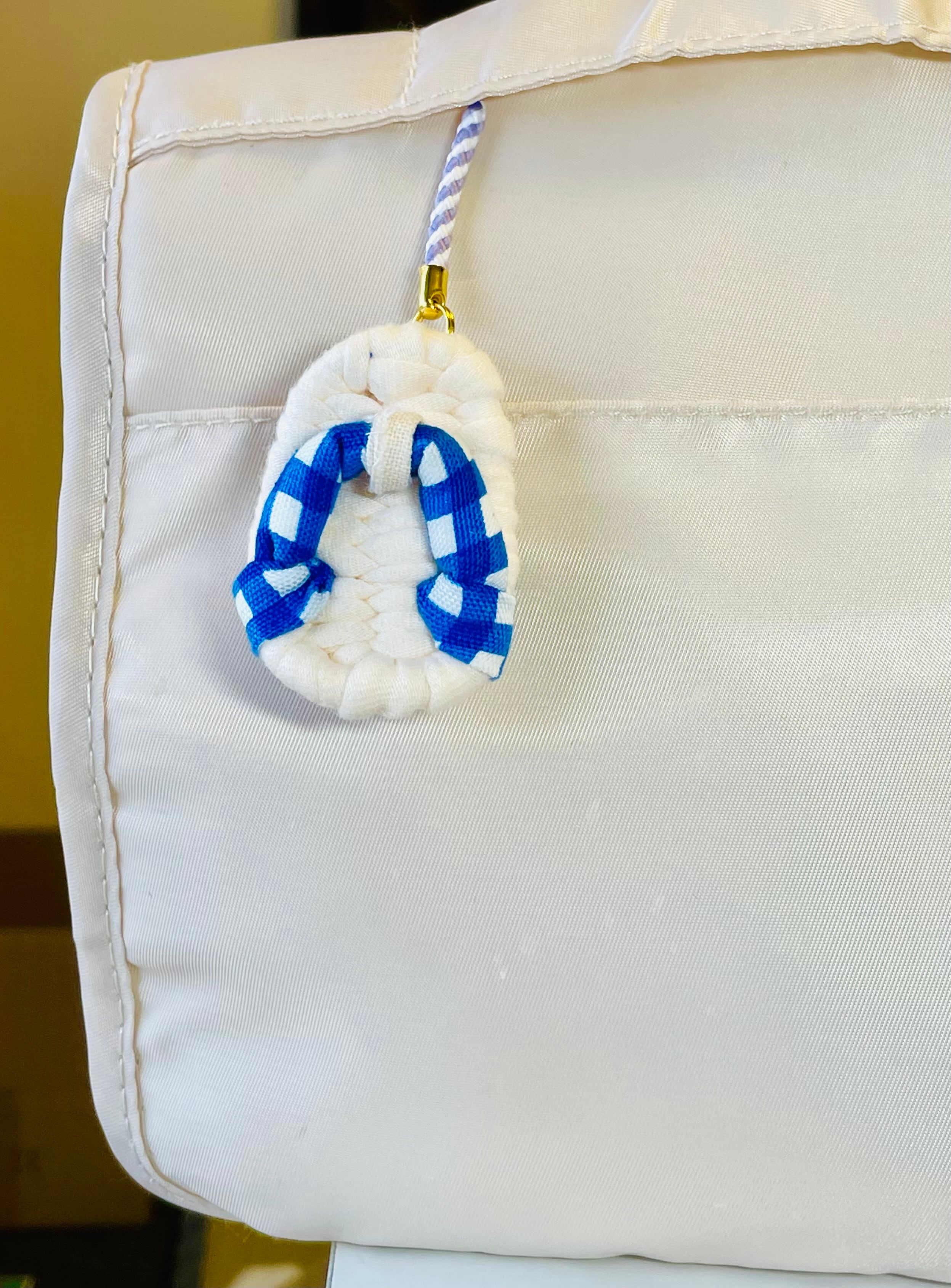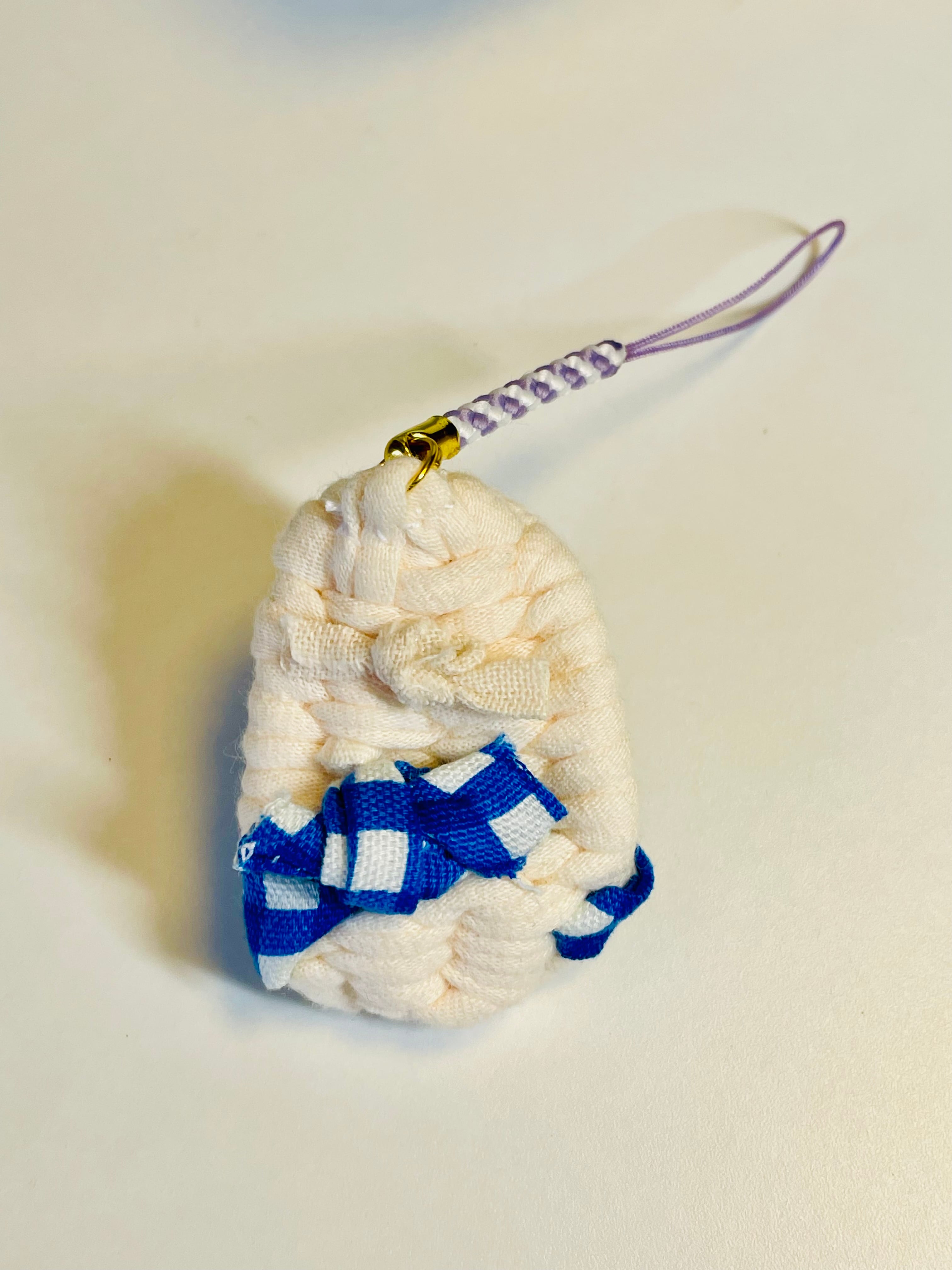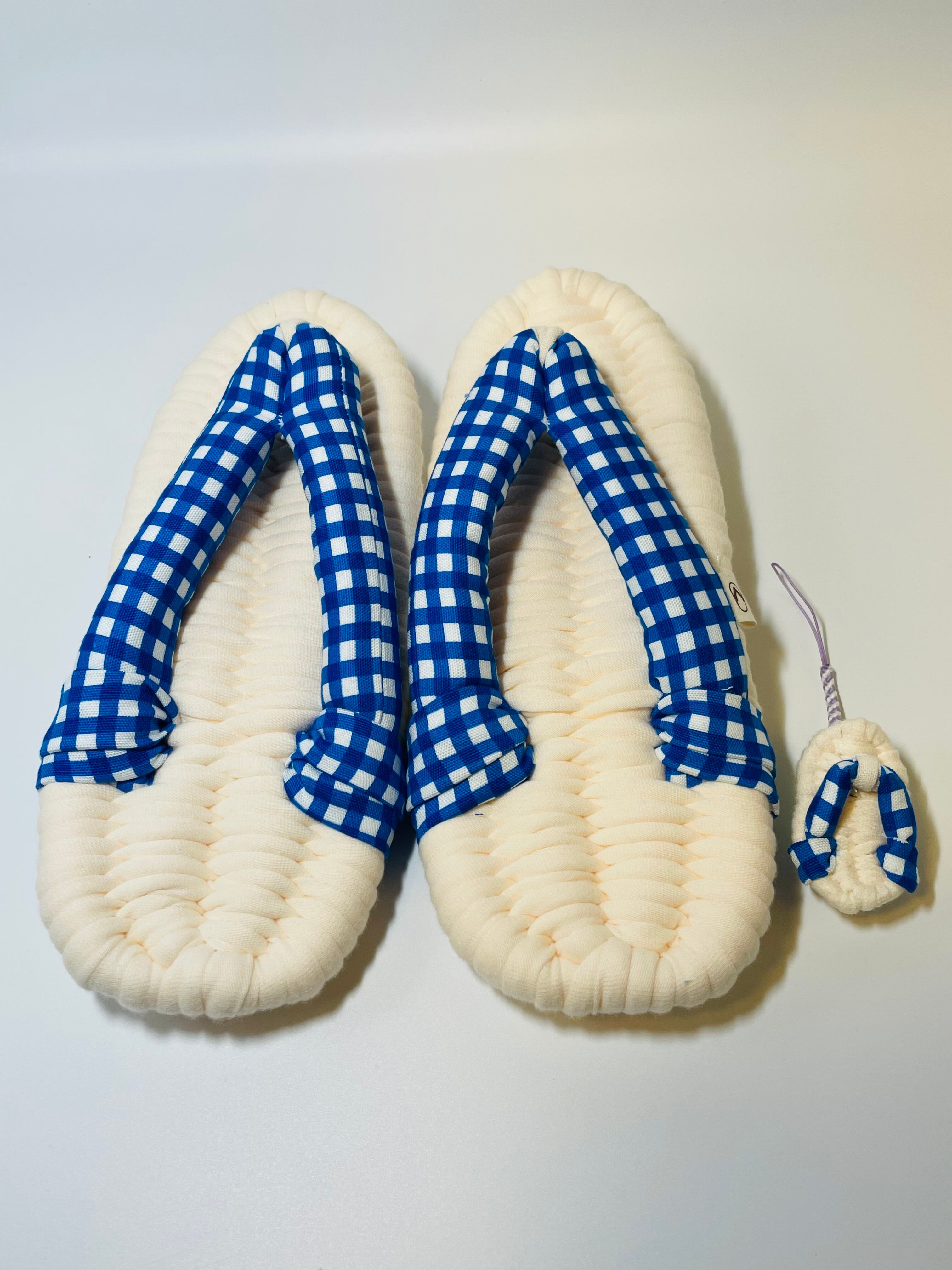「生成り×ブルーチェック ミニ布ぞうりストラップ」